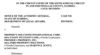 After being investigated by the Florida Attorney Generals Office, Scott entered into an Auto Voluntary Assurance Agreement (AVC) in 2010. As part of the conditions of that settlement, the defendant agreed to stop engaging in unfair and deceptive trade practices. Scott was also prohibited from operating his timeshare and land resale operation. It was believed that Marvin Scott had ran various businesses in timeshare and land resales beginning in the early 2000’s.